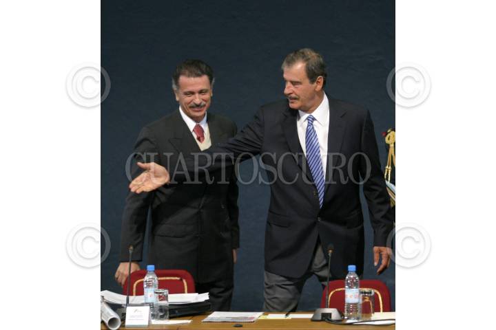 MEXICO, D.F. 02NOVIEMBRE2005.- Julio Frenk Mora, secretario de Salud conversa con Josefina Vazquez Mota, secretaria de Desarrollo Social previo a la Tercera Sesión Extraordinaria del Consejo Nacional de Infraestructura. FOTO: Nelly Salas/CUARTOSCURO.COM