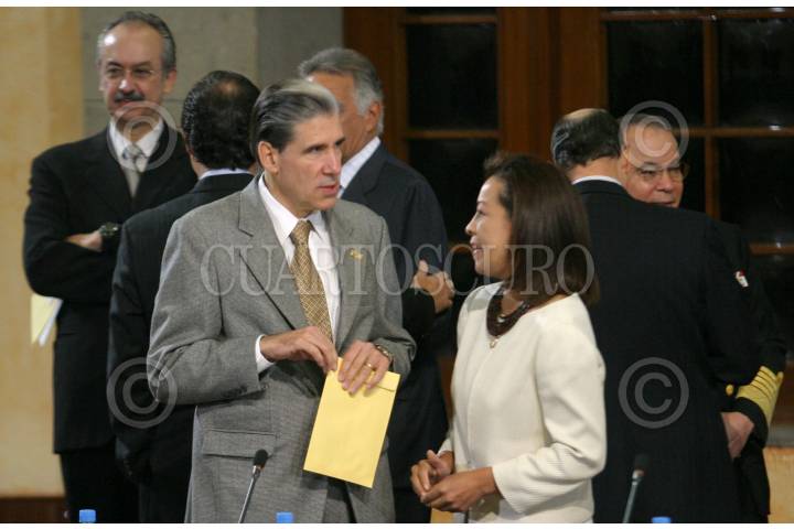 MEXICO, D.F. 02NOVIEMBRE2005.- Julio Frenk Mora, secretario de Salud conversa con Josefina Vazquez Mota, secretaria de Desarrollo Social previo a la Tercera Sesión Extraordinaria del Consejo Nacional de Infraestructura. FOTO: Nelly Salas/CUARTOSCURO.COM