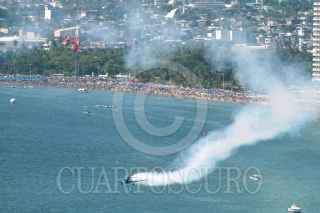 ACAPULCO 02NOVIEMBRE2005.- Una avioneta de exhibición sobrevuela la bahía acapulqueña durante el espectaculo aéreo Alextremo AirShow 2005 llevado a cabo en el puerto guerrerense este puente de día de muertos. FOTO: Eric Miralrío/CUARTOSCURO.COM