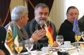 MEXICO, D.F. 03NOVIEMBRE2005.- Mendel Goldesten representante de la Unión Europea conversa con Alejandro Encinas, jefe de gobierno de la ciudad de México y monseñor Giussepe Bertelo, durante una reunión con embajadores europeos. FOTO: Nelly Salas/CUARTOSCURO.COM