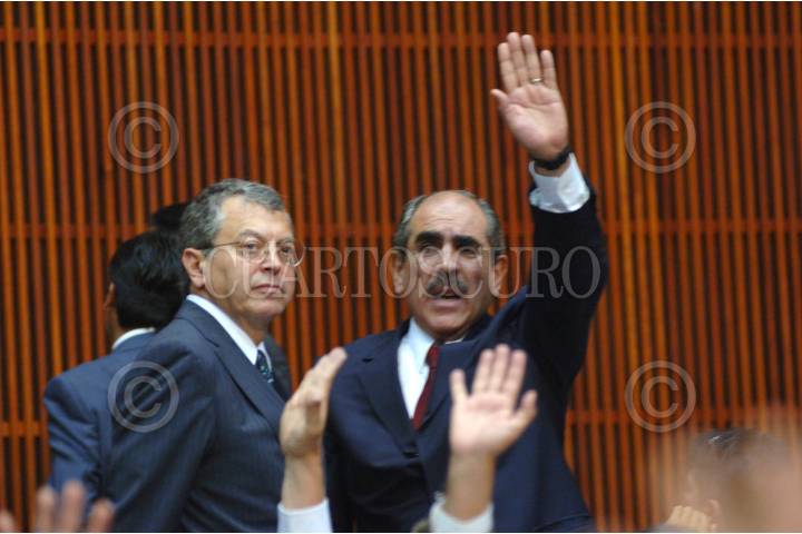 MEXICO D.F. 03NOVIEMBRE2005.- Los legisladores priístas Roberto Campa y Emilio Chauyffet coversan durante la sesión de la Càmara de Dipitados. Campa Cifrian anunciara en los proximos dias su futuro politico. FOTO. CUARTOSCURO.COM