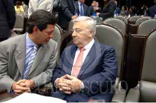 MEXICO D.F. 03NOVIEMBRE2005.- Los legisladores priístas Roberto Campa y Emilio Chauyffet coversan durante la sesión de la Càmara de Dipitados. Campa Cifrian anunciara en los proximos dias su futuro politico. FOTO. CUARTOSCURO.COM