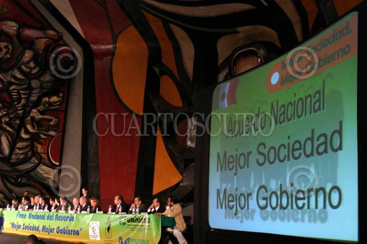 MEXICO, D.F., 18NOVIEMBRE2005.- Integrantes de varias organizaciones civiles, firmaron el "Acuerdo Nacional, Mejor Sociedad, Mejor Gobierno", en el Polyforum Siqueiros. FOTO: Moisés Pablo/CUARTOSCURO.COM