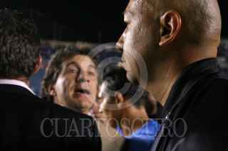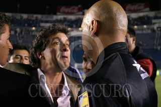 MEXICO, DF 19NOVIEMBRE2005.- En el estadio Azul, la Maquina del Cruz Azul recibió a los rayados de Monterrey en la fecha 16 del Torneo de Apertura del 2005. en el cual el entrenador de los celestes: Ruben Omar Romano fue a reclamarle al árbitro: Mauricio Morales al final del encuentro. Cruz Azul fue vencido por los rayados de Monterrey 2-1. FOTO: Leonardo Casas/CUARTOSCURO.COM