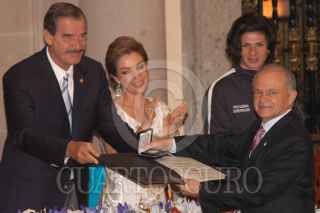 MÈXICO, D.F. 20NOVIEMBRE2005.- El presidente Vicente Fox entregò el premio Nacional de Deporte 2005 a el empresario Alfredo Harp Helú. FOTO:Miriam Sánchez/CUARTOSCURO.COM