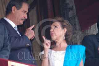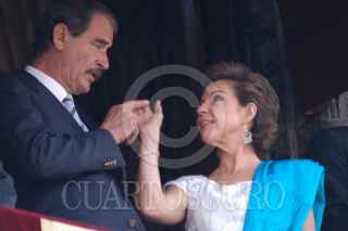 MÈXICO, D.F. 20NOVIEMBRE2005.- El presidente Vicente Fox y su esposa Martha Sahagún en el balcón de Palacio Nacional durante la celebración del XCV aniversario Revolución Mexicana. FOTO:Miriam Sánchez/CUARTOSCUO.COM