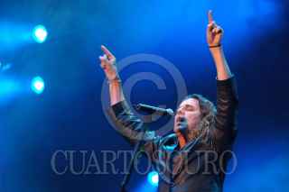 MÉXICO, D.F. 21NOVIEMBRE2005.- Saúl Hernández, vocalista del grupo Jaguares, durante su presentación en el concierto "Voces con causa" realizado en el Foro Sol a beneficio de las personas afectadas por el huracán Stan en el estado de Chiapas. FOTO: Iván Stephens/CUARTOSCURO.COM
