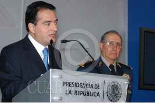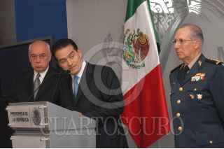MÈXICO, D.F.21NOVIEMBRE2005.- Daniel Cabeza de Vaca, Procurador General de la República y Gerardo Clemente Vega García, Secreatario de la Defensa Nacional dieron una conferencia de prensa en Los Pinos para anunciar la captura de Ricardo Garcìa Urquiza "El doctor" uno de los mayoristas de droga en Mèxico, vínculado al càrtel de Juàrez quien llevaba el control de operacines comerciales. FOTO: Miriam Sànchez/CUARTOSCURO.COM