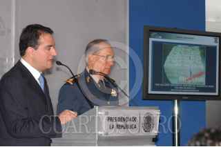 MÈXICO, D.F.21NOVIEMBRE2005.- Daniel Cabeza de Vaca, Procurador General de la República y Gerardo Clemente Vega García, Secreatario de la Defensa Nacional dieron una conferencia de prensa en Los Pinos para anunciar la captura de Ricardo Garcìa Urquiza "El doctor" uno de los mayoristas de droga en Mèxico, vínculado al càrtel de Juàrez quien llevaba el control de operacines comerciales. FOTO: Miriam Sànchez/CUARTOSCURO.COM