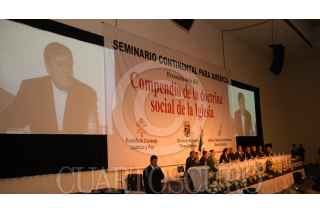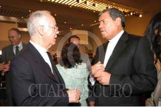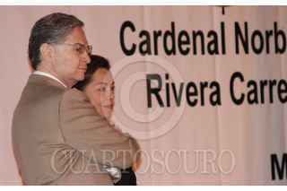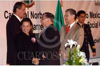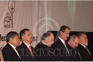 MÈXICO, D.F.21NOVIEMBRE2005.- Cardenal Norberto Rivera Carrera, arzobispo primado de México, Carlos Abascal Carranza, Secretario de Gobernación; Renè Rafaelle, Presidente Pontificio del Consejo Justicia y Paz; y el Presidente Vicente Fox durante Inauguración del Seminario Continental para América. FOTO: Miriam Sànchez/CUARTOSCURO.COM
