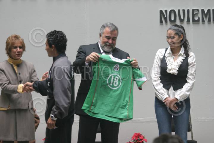 MEXICO, D.F. 21NOVIEMBRE2005.- Alejandro Encinas, jefe de gobierno de la ciudad de México recibió una camiseta de la selleción sub17 durante la ceremonia de entrega del Premio Estatal del Deporte. FOTO: Nelly Salas/CUARTOSCURO.COM