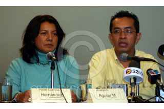 MEXICO, D.F., 06DICIEMBRE2005.- Aidé García Hernández Católicas por el Derecho a Decidir, Joaquín Aguilar Méndez Joven violado por sacerdote durante la conferencia que se hablo sobre el vaticano niega dar un informe Organización Naciones Unidas sobre los sacerdotes pederastas. FOTO: Leonardo Casas/CUARTOSCURO.COM