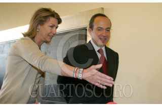 MEXICO; D.F., 07DICIEMBRE2005.- Luis Felipe Calderon, candidato a la presidencia del PAN, ofreció una conferencia de prensa en el Club de Industriales. En la imagen Margarita Zavala, diputada federal y esposa del candidato. FOTO: Moisés Pablo/CUARTOSCURO.COM