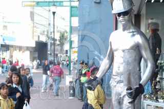 Toluca Estado de México 27DICIEMBRE 2005 Una Boutique de Ropa en el Centro de la Ciudad mantiene a sus afueras esta estatua viviente, que sobremanera atrae las miradas de los peatones. FOTO: Noé Marure/CUARTOSCURO.COM
