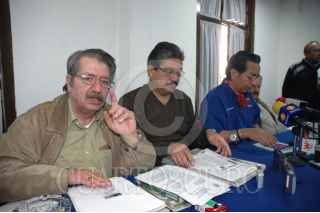 MÉXICO, D.F. 15ENERO2006.- Los militantes del partido Alternativa Social Demócrata y Campesina, Ignacio Iris Salomón y Carlos Berumen, manifestaron el apoyo que le brindarán a Víctor González Torres (Doctor Simi) como candidato sustituto de Nora Patricia Mercado a la presidencia de la República. FOTO: Iván Stephens/CUARTOSCURO.COM