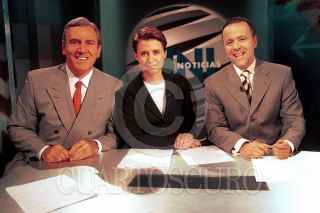 Carlos Albert, Denise Maerker y Ciro Gómez Leyva, titulares del noticiero de CNI Canal 40. FOTO: Victoria Valtierra/CUARTOSCURO.COM