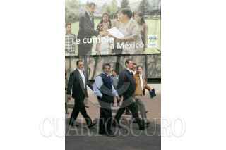 MEXICO, DF, 16ENERO2006.- Enrique Lepine Muñoz director general de la comisión para la regulación de la tenencia de la tierra, el presidente Vicente Fox y el jefe delegacional de la Benito Juárez, Fadlala Akabani saliendo de la ceremonia de la entrega de escrituras de CORETT y Liberación de Reservas de Dominio, que tuvo lugar en la explanada de la delegación Benito Juárez FOTO: Leonardo Casas/CUARTOSCURO.COM
