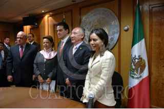 MEXICO, D.F., 16ENEO2006.- El diputado Jaime Moreno Garavilla, presidente de la Comisión de Participación Ciudadana; Daniel Cabeza de Vaca, Procurador General de la República; Heliodoro Díaz Escárraga, presidente de la Mesa Directiva de la Cámara de Diputados y María de los Ángeles Fromow, Fiscal Especializada para la Atención de Delitos Electorales, en la firma de convenio de colaboración en materia de capacitación, difusión y divulgación para prevenir delitos electorales. FOTO: CUARTOSCURO.COM