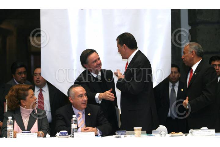 MEXICO, D. F. 16ENERO2006.- Jose Luis Soberanes, presidente nacional de la Comisión de Derechos Humanos y Alejandro Encinas, jefe de gobierno de la ciudad de México previo al informe que dicha comisión sobre inseguridad en nuestro país. FOTO: Nelly Salas/CUARTOSCURO.COM