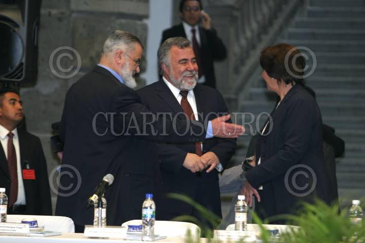 MEXICO, D. F. 16ENERO2006.- Jose Luis Soberanes, presidente nacional de la Comisión de Derechos Humanos y Alejandro Encinas, jefe de gobierno de la ciudad de México previo al informe que dicha comisión sobre inseguridad en nuestro país. FOTO: Nelly Salas/CUARTOSCURO.COM