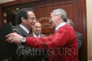 MEXICO, D.F., 17ENERO2006.- Sergio Aguayo y Javier Solorzano, periodista, durante la conferencia de prensa donde se lanzó convocatoria del Premio nacional de Periodismo 2005. FOTO: Moisés Pablo/CUARTOSCURO.COM