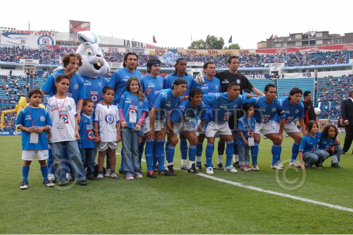MÈXICO, D.F. 28ENERO2006.- Rogelio Chávez del Cruz Azul y José Andrés Guardado del Atlas disputan el balon durante el partido de la segunda jornada del torneo de Clausura 2006 en el que empataron a un gol ambas escuadras. FOTO:Miriam Sànchez/CUARTOSCURO.COM