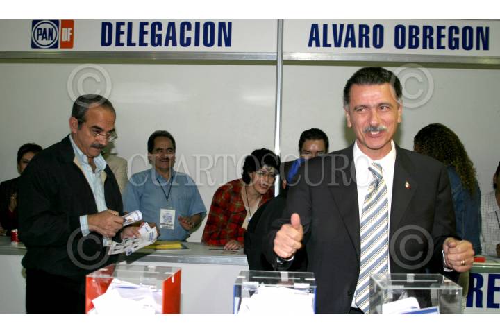 MÉXICO, DF, 29 ENERO 2006.- El secretario de Medio Ambiente y Recursos Naturales, Ing. José Luis Luege Tamargo, y el presidente del Partido Acción Nacional en el Distrito Federal, Carlos Gelista, durante las elecciones internas PAN para elegir candidatos a diputaciones senadurias. FOTO: Leonardo Casas/CUARTOSCURO.COM
