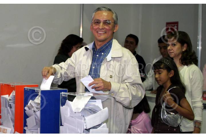 MÉXICO, DF, 29 ENERO 2006.- El secretario de Medio Ambiente y Recursos Naturales, Ing. José Luis Luege Tamargo, y el presidente del Partido Acción Nacional en el Distrito Federal, Carlos Gelista, durante las elecciones internas PAN para elegir candidatos a diputaciones senadurias. FOTO: Leonardo Casas/CUARTOSCURO.COM