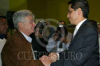 MEXICO, D.F. 29ENERO2006.- Demetrio Sodi de la Tijera, candidato electo del PAN para jefe de gobierno de la ciudad de México saluda a Carlos Gelista, presidente del PAN del D.F. FOTO: Nelly Salas/CUARTOSCURO.COM