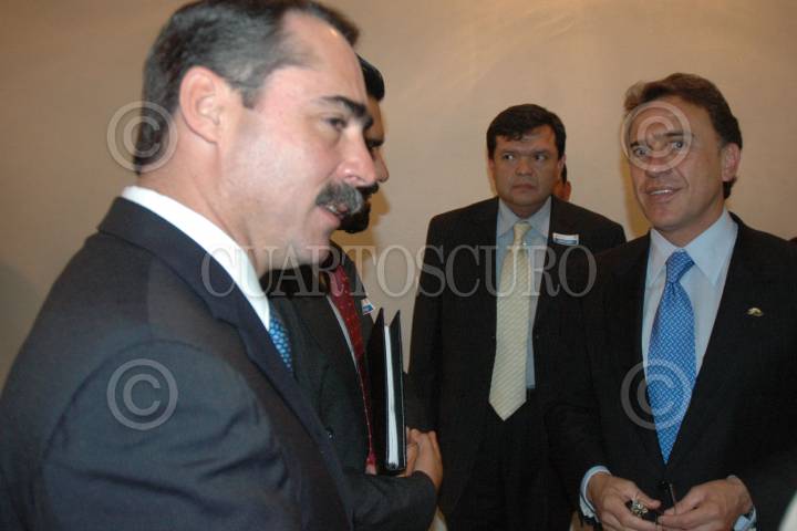 MÉXICO, D.F. 30ENERO2006.- Los gobernadores Patricio Patrón Laviada, Yucatán, Jesús Aguilar Padilla, Sinaloa, Lázaro Cárdenas batel, Michoacán, Fidel Herrera, Veracruz, Alejandro Encinas, Distrito Federal y Sergio Estrada Cajigal, Morelos, previo a tomarse la fotografía oficial durante la XX Reunión de Consejo Nacional de Seguridad. FOTO: Miguel Arellano/CUARTOSCURO.COM