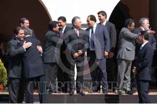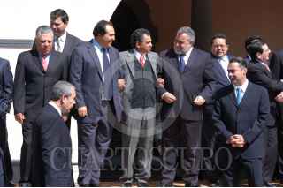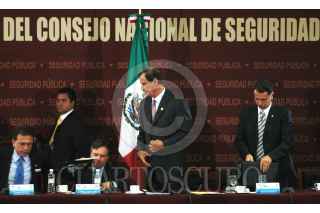 MÉXICO, D.F. 30ENERO2006.- Los gobernadores Patricio Patrón Laviada, Yucatán, Jesús Aguilar Padilla, Sinaloa, Lázaro Cárdenas batel, Michoacán, Fidel Herrera, Veracruz, Alejandro Encinas, Distrito Federal y Sergio Estrada Cajigal, Morelos, previo a tomarse la fotografía oficial durante la XX Reunión de Consejo Nacional de Seguridad. FOTO: Miguel Arellano/CUARTOSCURO.COM