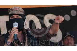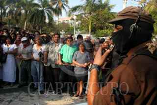 VERACRUZ, VERACRUZ 30ENERO2006.- El Subcomandante Insurgente Marcos, Delegado Zero para La Otra Campaña del EZLN a su llegada al parque Zamora del puerto veracruzano en su tercer dia de gira en la entidad. Foto: Moysés Zuñiga Santiago/CUARTOSCURO.COM