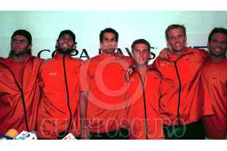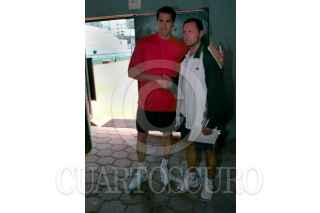 El capitan canadiense Martín Laurendeau desea suerte a su similar mexicano Oliver Fernández a dos dias de iniciar la Serie Copa Davis en el Deportivo Chapultepec. FOTO:Oswaldo Ramírez/CUARTOSCURO.COM