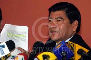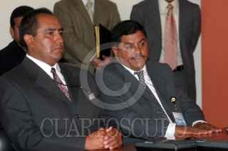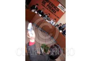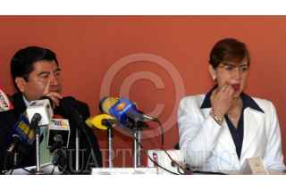 PUEBLA, PUEBLA, 15FEBRERO2006.- Mario Marín, Gobernador de Puebla y Blanca Laura Vlleda, procuradora del estado, ofrecieron una conferencia de prensa luego de que se difundiera una grabación telefonica supuestamente entre el mandatario y el empresario Kamel Nacif, en donde se trata sobre el encarcelamiento de la periodista Lydia Cacho. En la imagen estan los supuestos agentes que arrestaron a Cacho en Cancún. FOTO: Moisés Pablo/CUARTOSCURO.COM