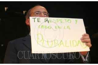 MÉXICO, D.F. 15FEBRREO2006.- Durante la visita del candidato presidencial del PAN, Felipe Calderón Hinojosa a la Universidad Tecnológica de México campus Cuitláhuac algunos alumnos mostraron cartulinas con protestas. FOTO:Miriam Sánchez/CUARTOSCURO.COM