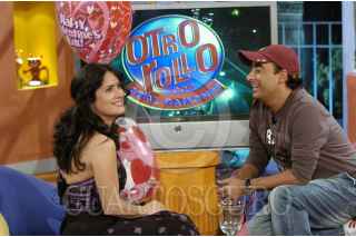 MÉXICO D.F. 15FEBRERO2006.- La actriz Salma Hayek y Adal Ramones durante el programa de "Otro Rollo", donde celebraron el día del amor y la amistad. FOTO: CUARTOSCURO.COM