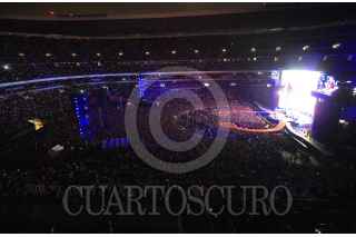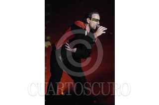 MÉXICO D.F. 15FEBRERO2006.- El bajista Adam Clayton, de la banda Irlandesa U2, durante el primero de los dos conciertos que daran el Coloso de Sta. Ursula, en la ciudad de México. FOTO: Fernando Aceves/OCESA/CUARTOSCURO.COM