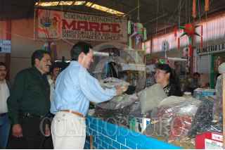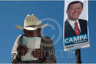SANTIAGO TULANTEPEC, HIDALGO 19FEBRERO2006.- Habitantes del municipio leen las propuestas del candidato del Partido Nueva Alianza (PANAL) a la presidencia de la república durante su acto de campaña. FOTO: Iván Stephens/CUARTOSCURO.COM