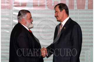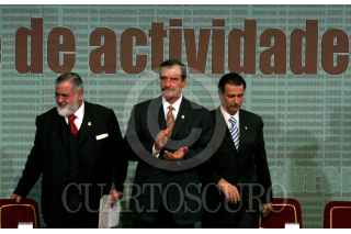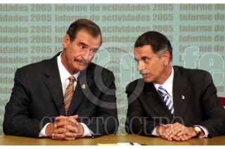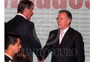 MEXICO, D.F., 22FEBRERO2006.- Vicente Fox, Presidente de la Republica y Carlos María Abascal, Secretario de Gobernación, durante el informe de labores 2005 del titular de la CNDH, en los Pinos. FOTO: Diego Gallegos/CUARTOSCURO.COM