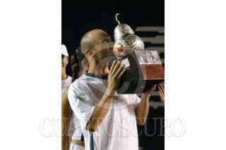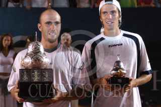 ACAPULCO, GUERERRO, 05MARZO2006.- El ganador del abierto mexicano de Tenis el Peruano Luis Horna y en segundo lugar el argentino Juan Ignacio Chela FOTO: Erick Miralrío/CUARTOSCURO.COM