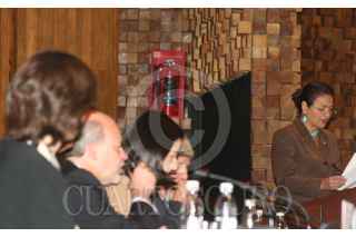 MEXICO D.F. 06MARZO2006.- Eduardo Sojo Aldape, Coordinador de Políticas Públicas, y María de Lourdes Aranda Bezaury de la Secretaria de Relaciones Exteriores, durante el Foro de Oportunidades en la Relación Económica y Comercial entre China y México y su Contexto Latinoamericano en la Secretaria de Relaciones Exteriores. FOTO: Diego Gallegos/CUARTOSCURO.COM