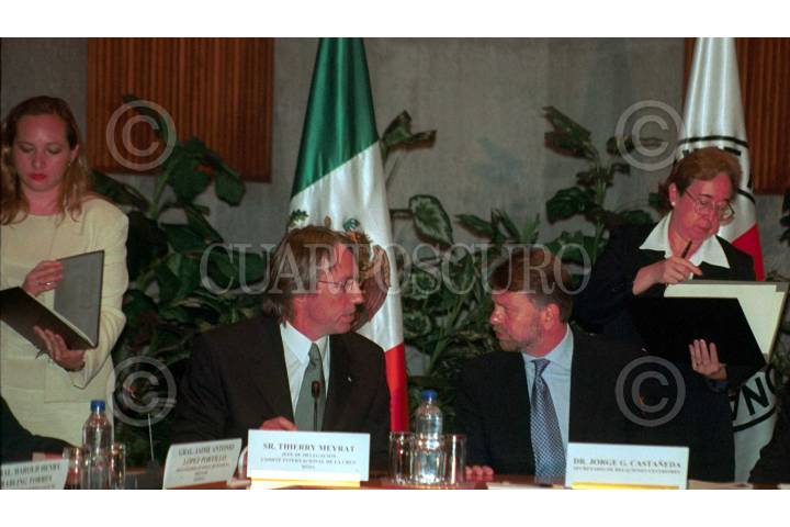 Thierry Meyrat, jefe de la Delegación del Comité Internacional de la Cruz Roja y Jorge G. Castañeda, secretario de Relaciones Exteriores firmaron el Acuerdo para establecer una delegación regional del Comité entre Estados Unidos y México. FOTO: Susana Navarrete/CUARTOSCURO.COM