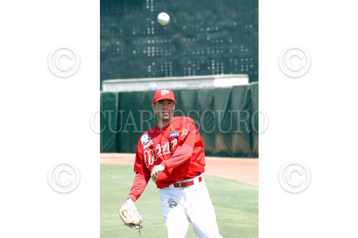 MEXICO D.F.07 MARZO.2006-Jesús Lopéz, parador en corto, de los Diablos Rojos, se prepara para su proximo encuentro en contra de una selección del estado de Hidalgo, en el Foro Sol.FOTO: Guillermo Perea / CUARTOSCURO.COM