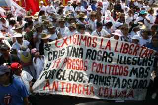 MÉXICO D.F. 08MARZO2006.- En el día internacional de la mujer, una gran movilización de antorchistas, en su mayoría mujeres marcharon por la av. paseo de la Reforma, para exigir la liberación de presos políticos del Movimiento Antorcha Campesina y de Cristina Rosas Illescas. FOTO: Diego Gallegos/CUARTOSCURO.COM