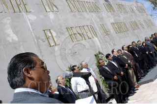 QUERETARO, QUERETARO, 21MARZO2006.- Integrantes de la logia Masona queretana, montaron una guardia de honor en el monumento a Benito Juarez en el Bicentenario de su Natalicio. FOTO: Fabiola Mapy/CUARTOSCURO.COM