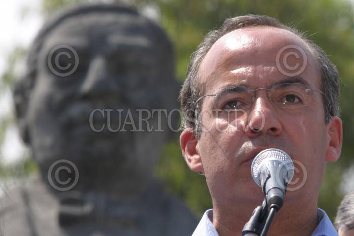 CHIMALHUACAN, EDO. DE MEXICO.- Simpatizante de Felipe Calderòn Hinojosa, candidato a la presidencia de la Repùblica por el PAN durante el homenaje al Benemérito de las Américas "Benito Juàrez" en una plazuela de Chimalhuacan. FOTO:Rocio Ortiz/CUARTOSCURO.COM
