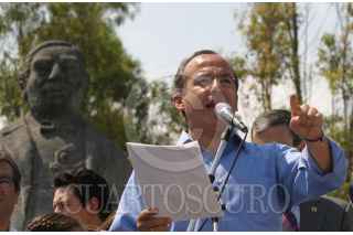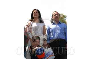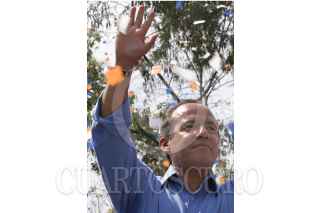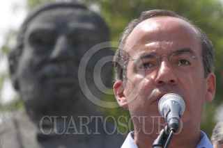 CHIMALHUACAN, EDO. DE MEXICO.- Simpatizante de Felipe Calderòn Hinojosa, candidato a la presidencia de la Repùblica por el PAN durante el homenaje al Benemérito de las Américas "Benito Juàrez" en una plazuela de Chimalhuacan. FOTO:Rocio Ortiz/CUARTOSCURO.COM