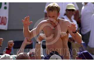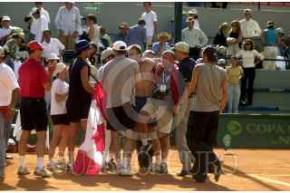 Miguel Gallardo del equipo de tenis mexicano, no pudo mantener el paso en el último juego de la Copa Davis, ya que cayó ante el canadiense Fredreric Niemeyer, en tres sets y el cuarto y definitivo en muerte súbita. FOTO: David Bolaños/CUARTOSCURO.COM