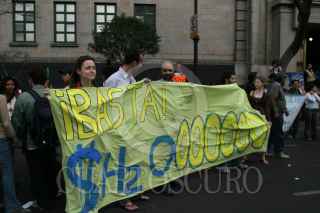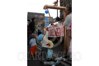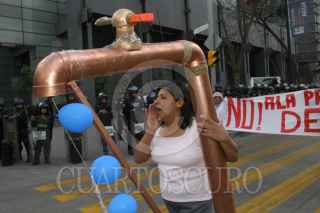MEXICO D.F. 22MARZO2006.- Decenas de personas marcharon por las calles del centro historico. Los manifestantes exigen el libre derecho del agua y rechazan la privatización del vital liquido. Un niño toma un globo que representa las gotas de agua que salen de una toma de agua. FOTO: Nelly Salas/CUARTOSCURO.COM