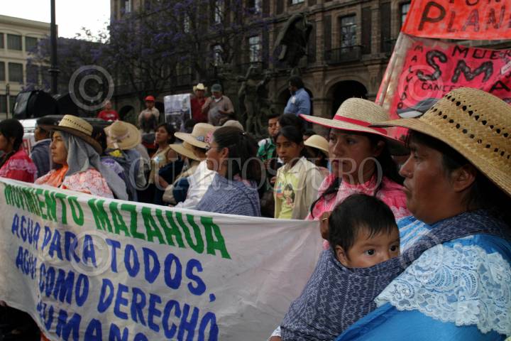 MEXICO D.F. 22MARZO2006.- Decenas de personas marcharon por las calles del centro historico. Los manifestantes exigen el libre derecho del agua y rechazan la privatización del vital liquido. Un niño toma un globo que representa las gotas de agua que salen de una toma de agua. FOTO: Nelly Salas/CUARTOSCURO.COM